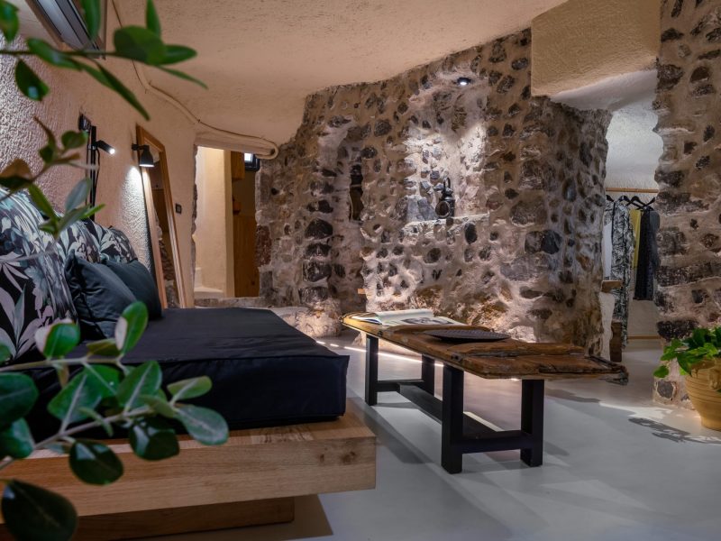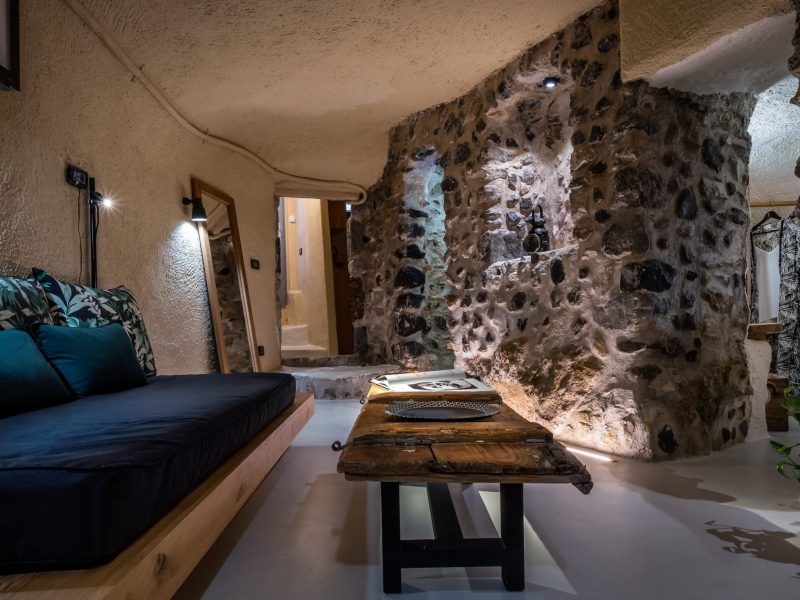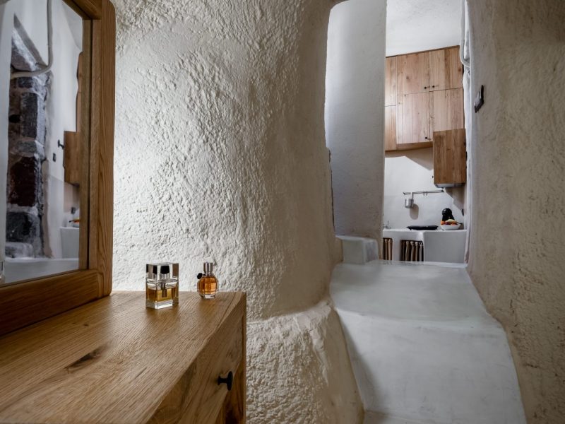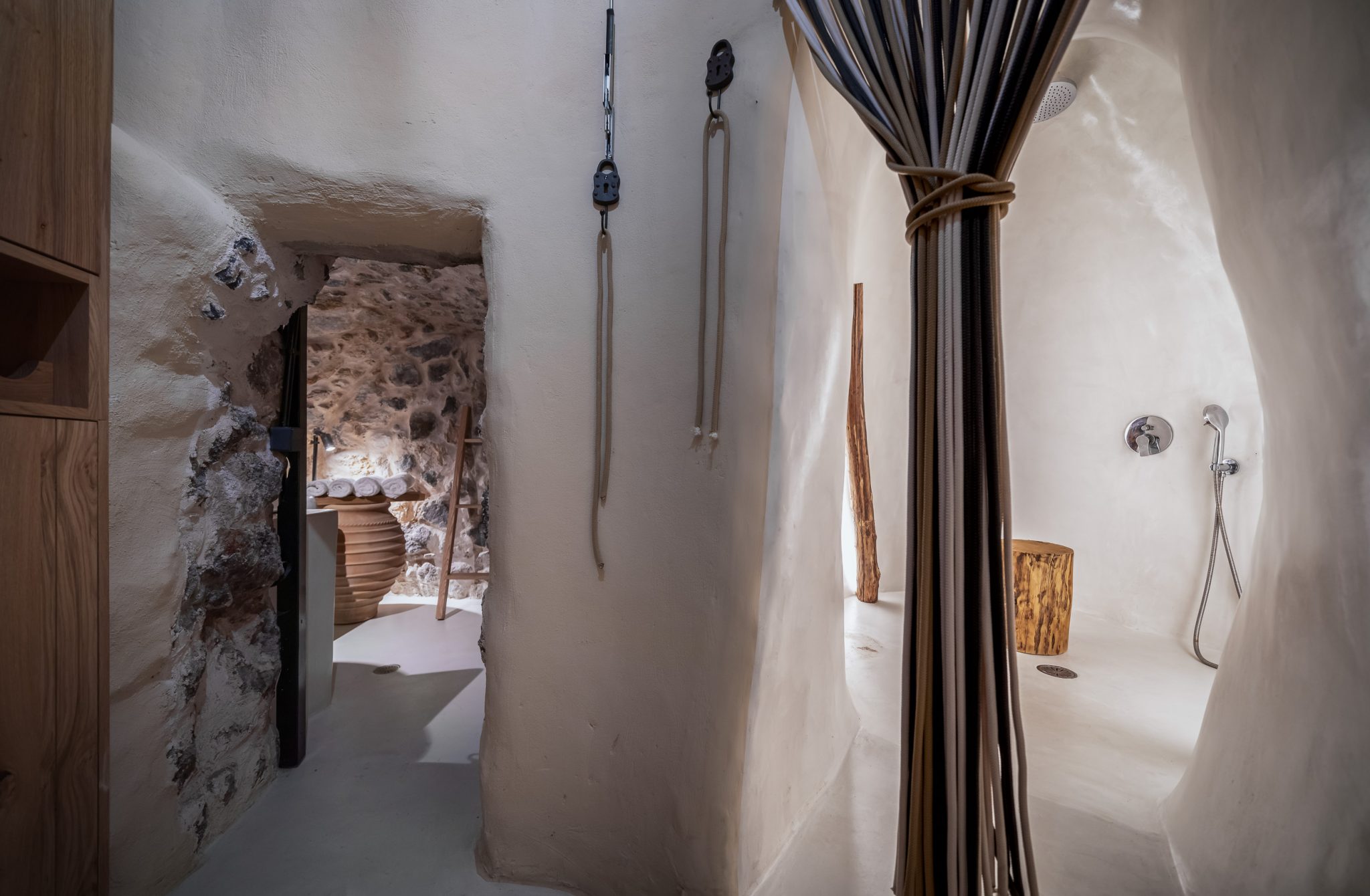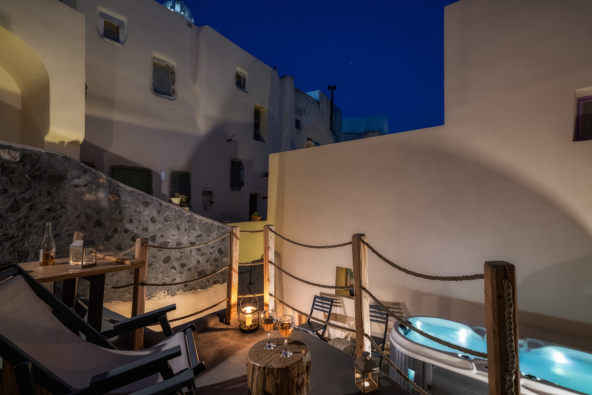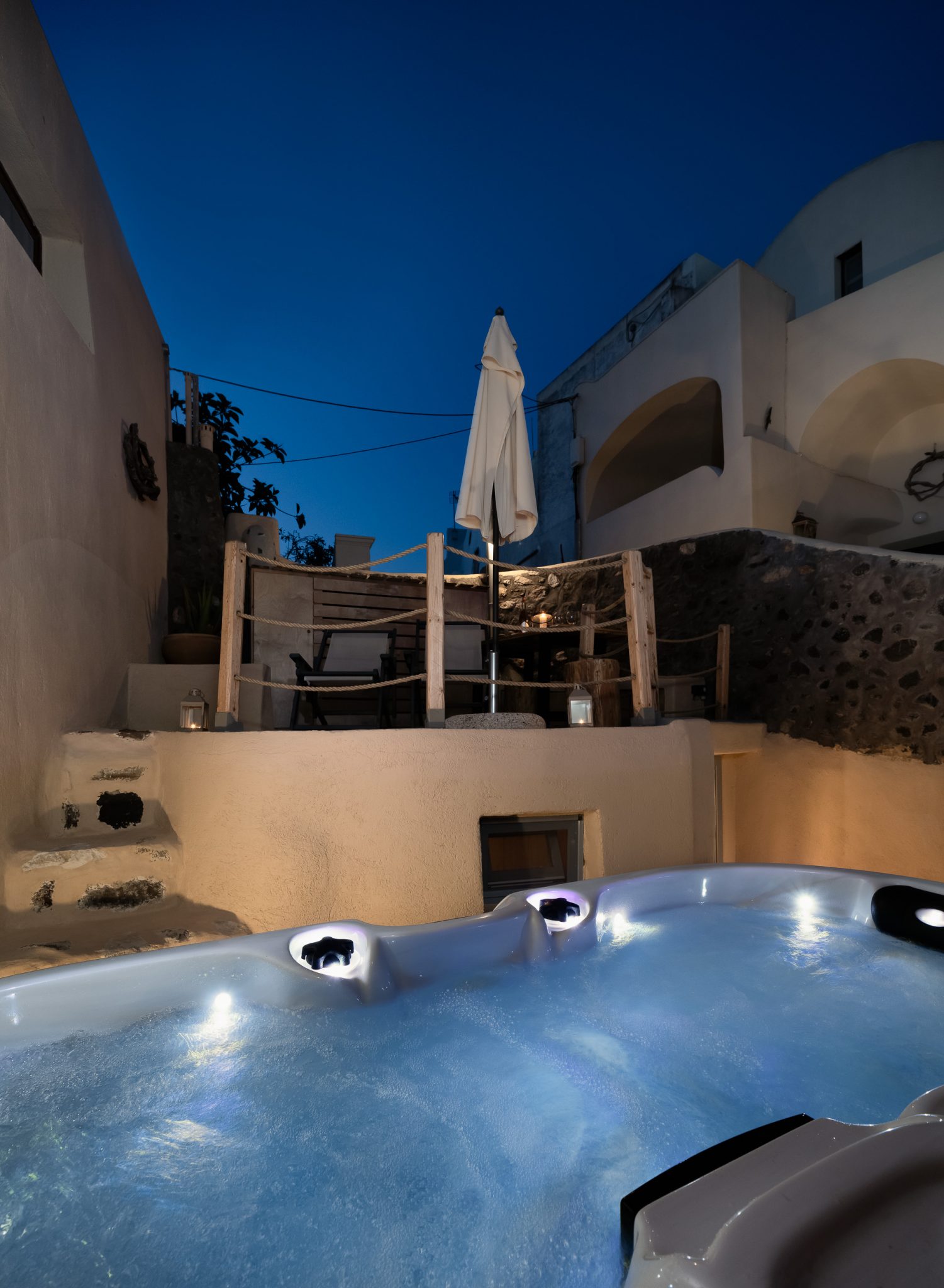 Cave Suite, 65mq, has been designed following the traditional architecture of Santorini. Hidden in the narrow streets of Emborio, Cave Suite offers a relaxing courtyard with a jacuzzi where you will experience the authentic feeling of the village.